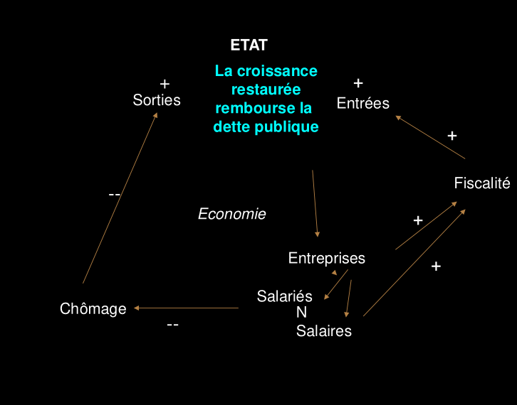Si ceci arrive l’État doit agir pour stimuler l’économie, il doit s’endetter si nécessaire. En fin de compte, il investit en lui-même. Il doit créer des projets comme des éoliennes ou des hôpitaux pour faire bouger l’argent. Ceci va créer des emplois et par conséquent de la consommation avec un pouvoir d’achat en hausse. Selon Keynes 100 millions de CHF dépensés peuvent générer à l’infini beaucoup plus d’argent, c’est le multiplicateur keynésien. Il y a des effets entraînants comme dans la dépression, mais positifs.