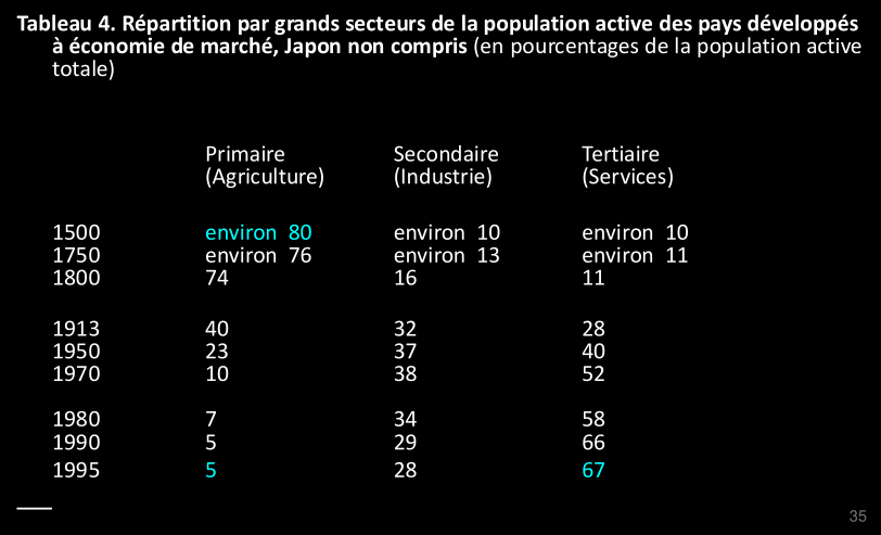 La main d’oeuvre de l’agriculture va être libérée pour l’industrie, même si elle n’est pas si qualifiée elle aide le secteur secondaire. On rattrape le retard (17% 25% de la richesse investie dans la technologie). Le taylorisme et le fordisme sont imposés ce qui fait innover le secteur et alimente la croissance.