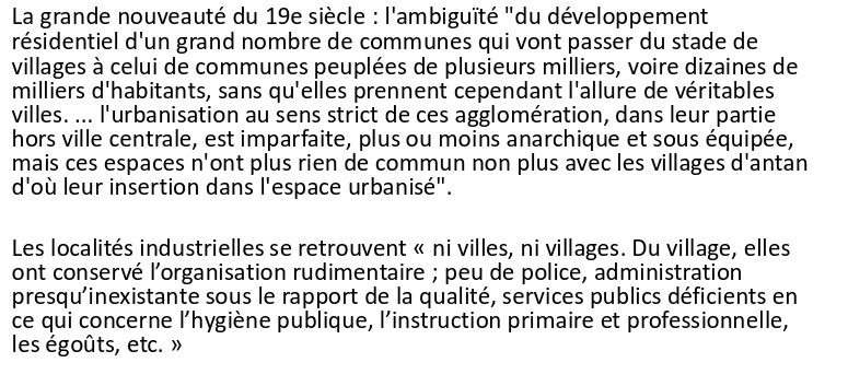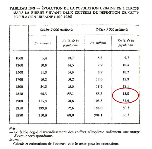 Paul Bairoch fait un lien entre la R.I et l’urbanisation. Et ceci est vrai, un mode de vie urbain va devenir la règle après la R.I. C’est pas notre mode de vie, pas des mégapoles, mais des villes qui montrent l’essentiel du phénomène urbain en étant plus modestes.