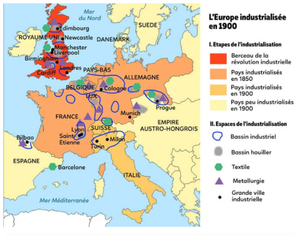 Jusqu’à ce moment les villes avaient un rôle administratif mais avec l’industrialisation on a une fonction industrielle de ces centres urbains. Les personnes viennent travailler dans l’industrie et cela débouche dans une hausse de la population urbaine.