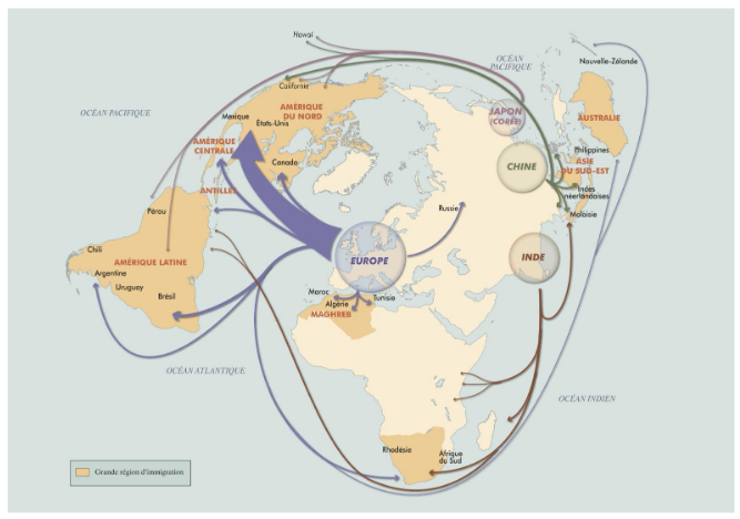 Des flux migratoires apparaissent depuis l’Europe même si la vie était maintenant meilleure. Elle avait toujours été un continent de migration et maintenant l’Atlantique est le cœur de mouvement migratoire puisque les nouveaux transports facilitent transporter les personnes. Ceci permet aussi de rentabiliser les transports de biens. On pouvait juste aller à travers la mer à cette époque. Au XIXème le plus grand flux migratoire apparaît, envers l’Amérique.