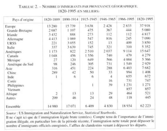 On peut observer comment la GB est la première dans ce classement. Pendant cette période les USA n’ont pas mis de limite à l’immigration, il y avait quand même des clandestins et les chiffres pourraient être plus grands.
