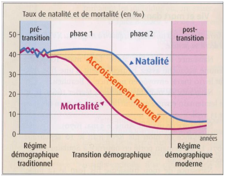La population va croître bien plus rapidement. Cette transition est graduelle et ça va prendre du temps pour que tout change, comme on a exploré dans d’autres séances au XIXème siècle la mortalité baisse mais la natalité et la fécondité ne baissent pas. Après cette croissance diminuera puisque dans le 2ème phase les femmes ont moins d’enfants mais avant cela on a un excédant de population.