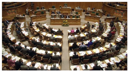 La chambre du peuple avec 200 sièges (conseil national): La chambre des cantons (conseil des états) avec 46 sièges, deux par canton sauf das le cas des demi-cantons: On élit les conseillers fédéraux dans le conseil national où ils doivent prêter serment à la CH: Ils travaillent dans un collège de 7 et se réunissent, ils sont l’exécutif: