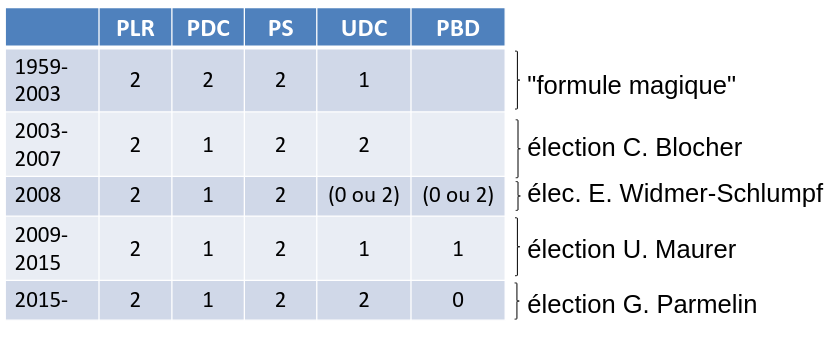 Composition du Conseil fédéral selon la “règle” proportionnelle: