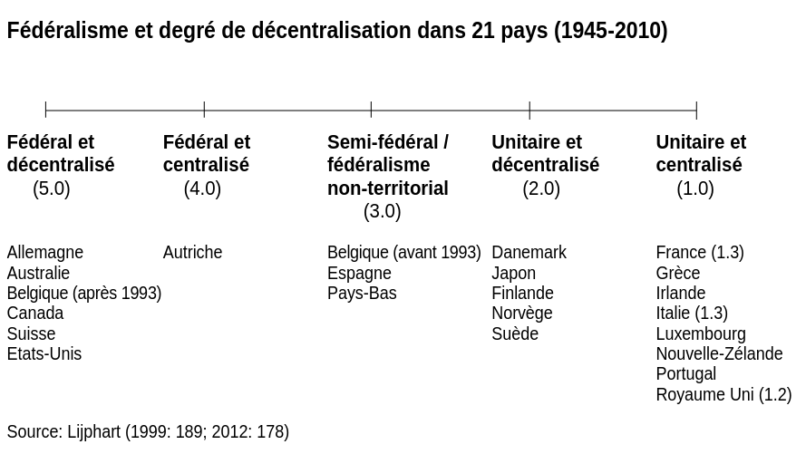 C’est une division du pouvoir sur base territoriale, pour Riker: Le fédéralisme est une organisation politique dans laquelle les activités du gouvernement sont divisées entre les gouvernements régionaux et un gouvernement central, de sorte que chaque niveau de gouvernement décide sur ses activités.