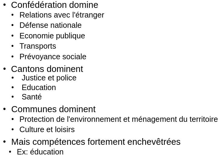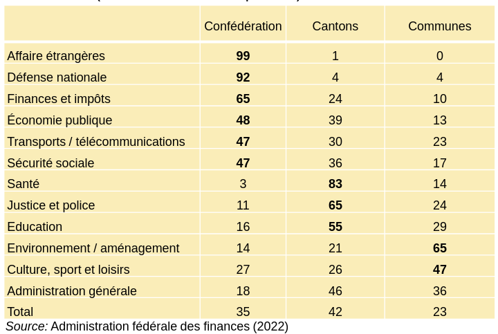 • C’est la difference entre état unitaire et fédéral, cette répartition est toujours présente soit aux USA ou à la CH.