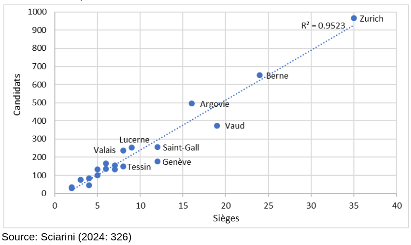 • Dans le conseil national le nombre de sièges par canton influence la compétition électorale (nombre de candidats):