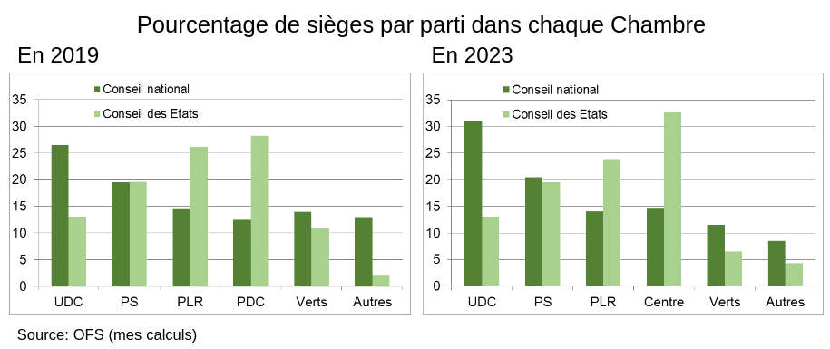 C’est la conséquence du système électoral, la différence de composition partisane entre les deux chambres. Il y a des partis sous-représentés dans le conseil des états par rapport au conseil national comme l’udc et viceversa.