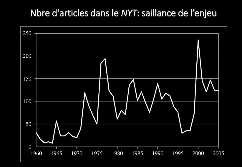 La majorité de problèmes ne franchissent pas la barrière vers le problème social. Des fois ça reste comme problème publique pendant des décennies par manque de consensus comme l’assurance de maternité.