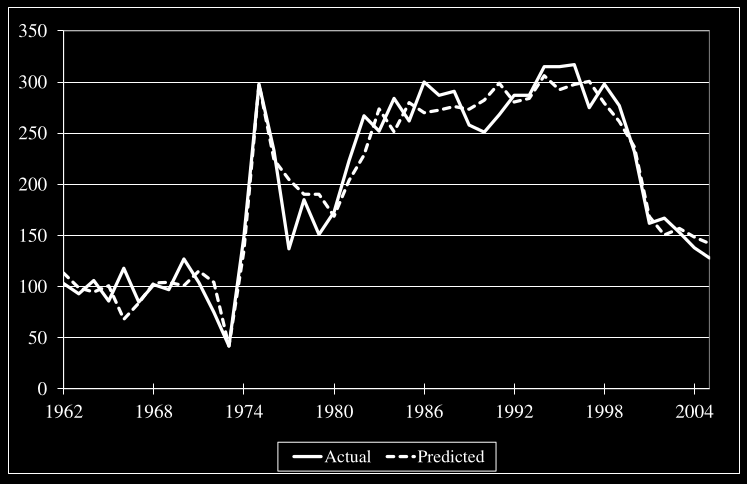 Le tableau montre le changement des thèmes traités dans le manifestes électoraux de l’UDC. Petit à petit l’importance relative accordée aux enjeux politiques change. Comme on a vu dans Séance 16-Comportement politique l’offre politique et le vote d’enjeu influencent le comportement des électeurs.