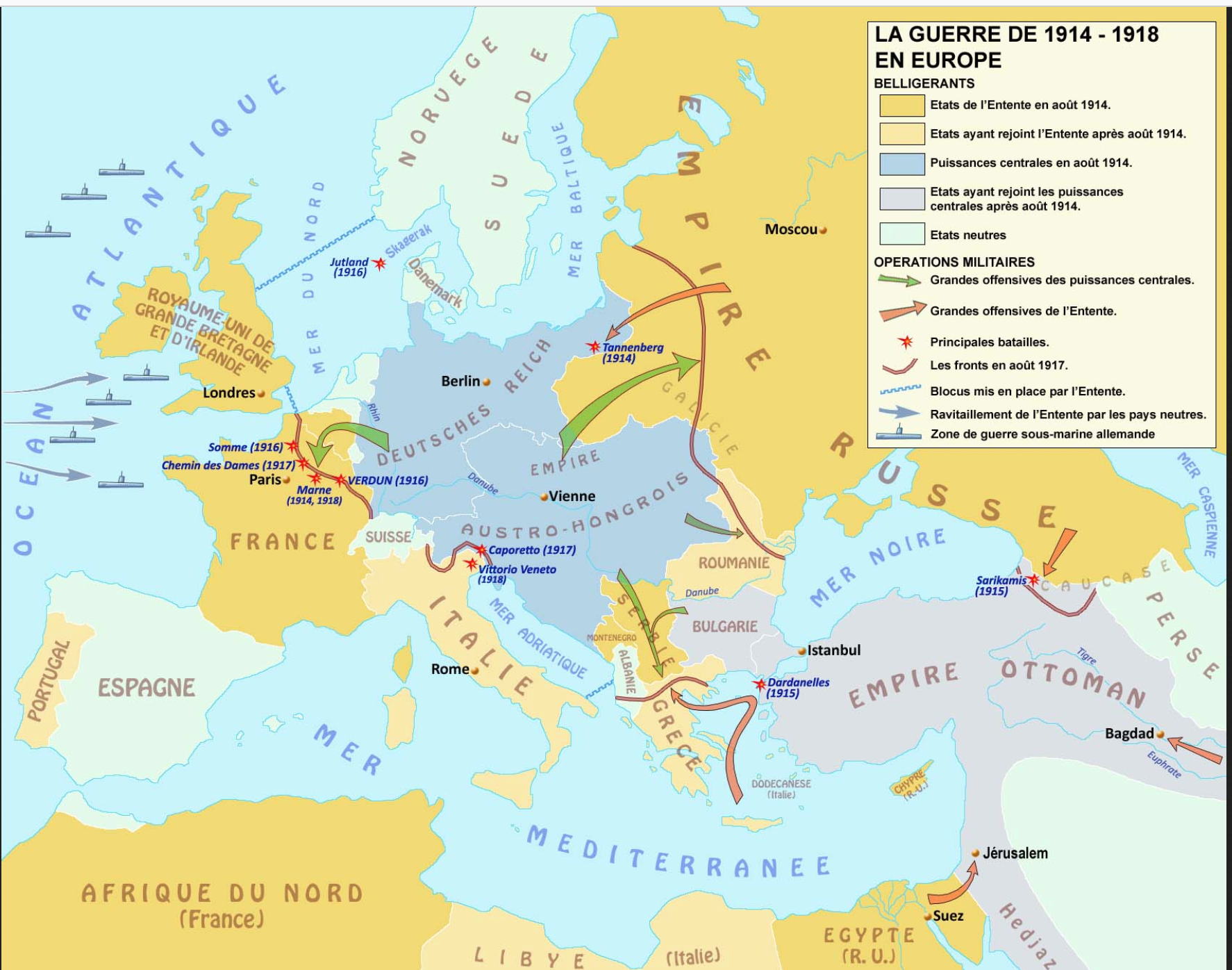 - 3 août 1914: Allemagne déclare la guerre à la France et à la Belgique.