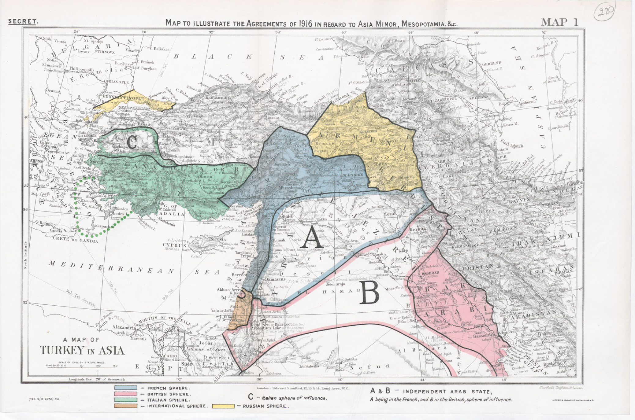 - Sykes Picot, négociation sécrètes avec les français (FR-UK). Partager la region promis aux arabes dune autre maniere (obtenir du pétrole). Symbole de la trahison d'Occident. Pétrole=Marine forte.