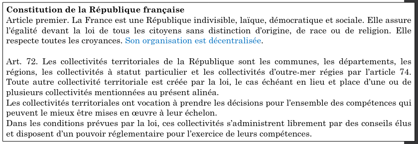 L’État renonce a son monopole décisionnel. Il y a toujours un pouvoir central, qui délègue une partie de ses compétences à un echelon inférieur: les collectivités territoriales.