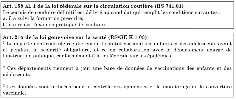 Il régit aussi comment l’État doit intervenir (son action concrète). L’État fait des choses et intervient dans les vies des administrés, comme l’article 21 de la loi genevoise sur la santé: L’État doit contrôler l’état de vaccination des enfants durant leur scolarisation obligatoire. On régit comment l’État peut disposer de ces données et les utiliser.