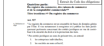 Là on trouve des règles sur comment faire un contrat de vente ou louer une relation commerciale. Dans le Code des obligations on mélange les lois pour les particuliers et les relations commerciales, ce qui est original. On y trouve aussi des lois sur la concurrence entre autres choses, en général des contraintes de ce que les entreprises peuvent et ne peuvent pas faire.