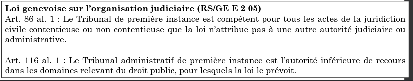 Ces lois régissent a qui s’adresser et comment le faire pour mettre en oeuvre le droit pour être sûr que les tribunaux vont s’emparer d’un certain cas et le traiter correctement.