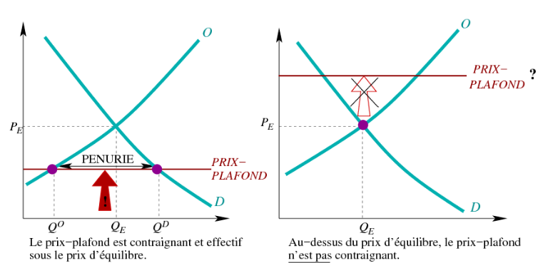 - Pour que le prix plafond soit contraignant, il doit donc être inférieur au prix d’équilibre