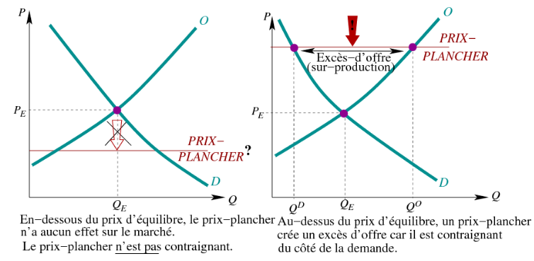 - Il peut imposer un prix minimal, ou prix plancher. le bien ou le service ne peut pas être échangé à un prix inférieur à ce plancher.