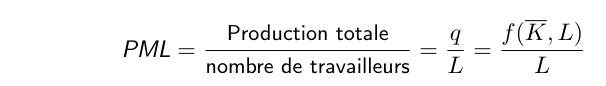 - La productivité moyenne = “combien d’unités du bien chaque travailleur produit en moyenne”: