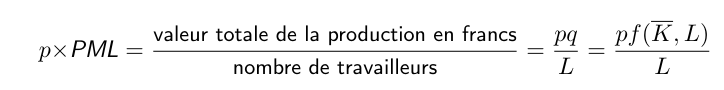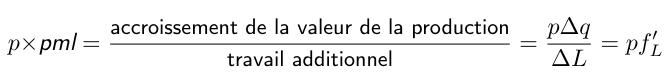 - Corollaire: en multipliant les productivités physiques par le prix du bien on obtient un rendement moyen ou marginal ou la valeur (en francs) de la productivité.