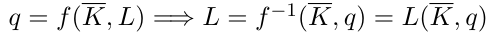 - On peut simplifier avec les deux facteurs de production principaux: q = f (K, L).