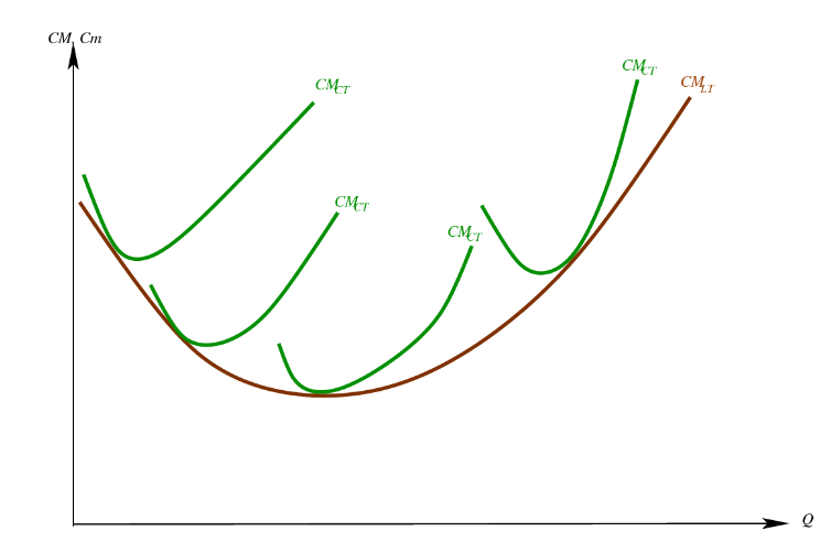 - La base de la courbe de coût moyen total (CT M ) en forme de U correspond à la quantité qui minimise le coût moyen total.