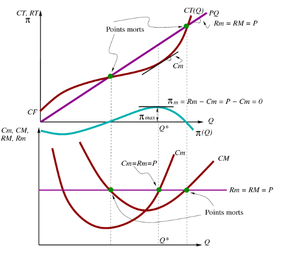 - Quand Rm = Cm =⇒ q∗ maximise le profit.