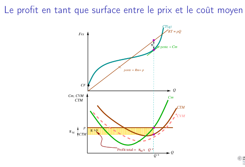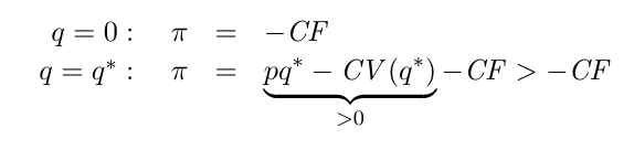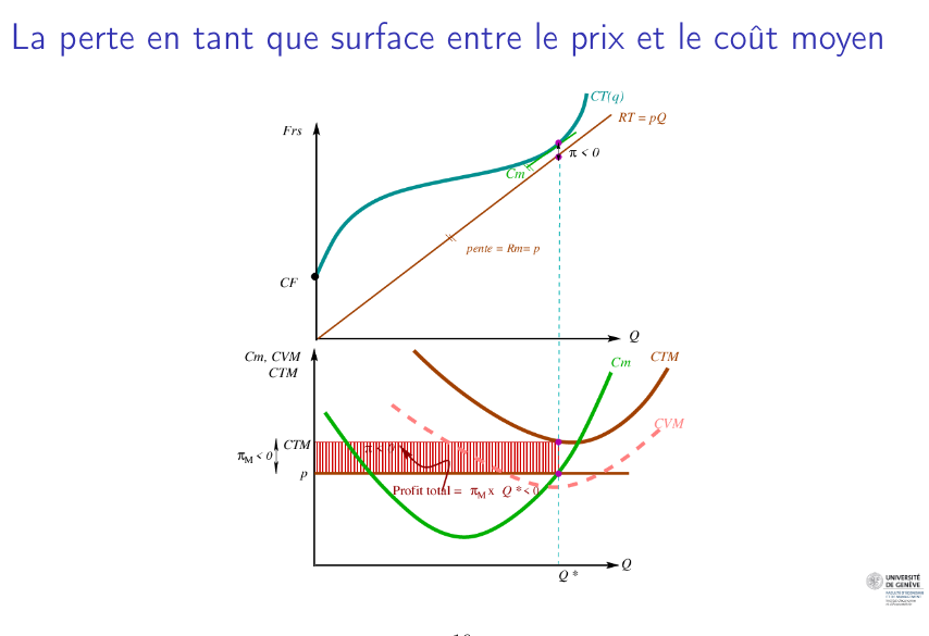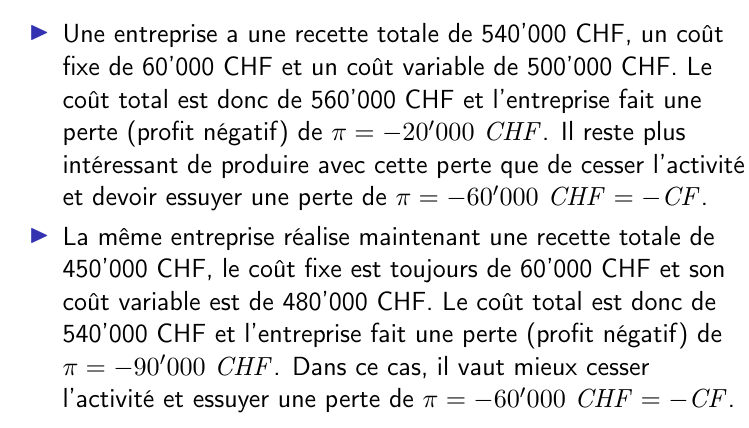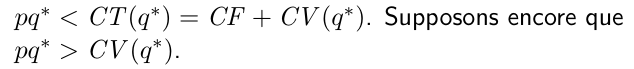 Il en découle que le profit en produisant q* est plus grand que le profit si on cesse de produire (q=0):