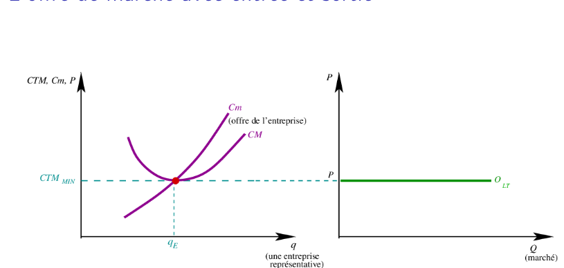 - La courbe d’offre du marché à long terme est horizontale à ce niveau de prix.