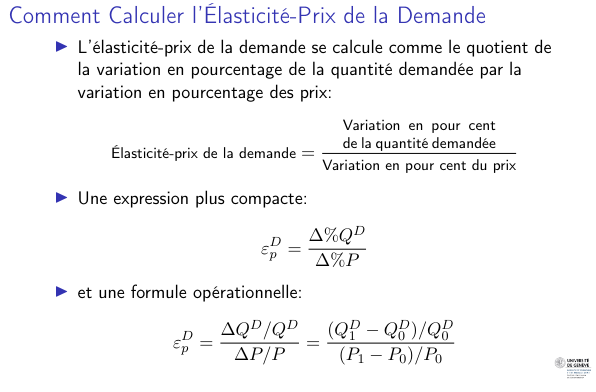 - L’élasticité-prix de la demande se mesure comme la variation en % des quantités demandées divisée par la variation en pourcentage du prix.
