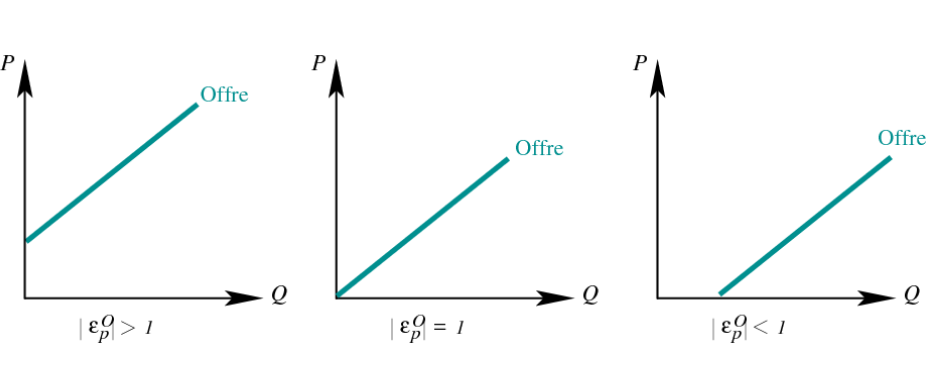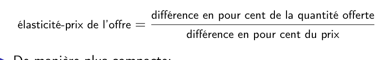 L’élasticité-prix de l’offre s’obtient en divisant la différence en pour cent de la quantité sur la différence en pour cent du prix: