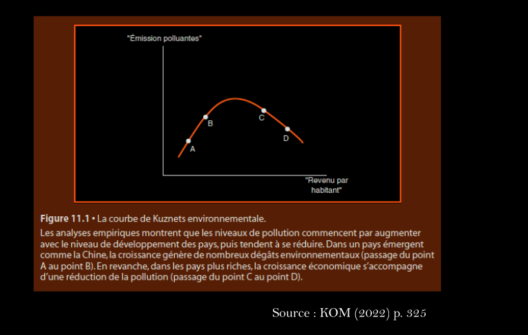 - Plus de croissance économique (courbe de Kuznets environnementales)