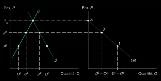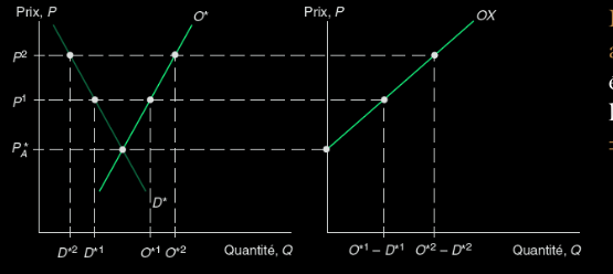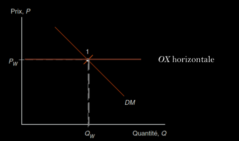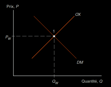 Le prix mondial d’équilibre permet d’égaliser la demande d’importation (courbe DM) et l’offre d’exportation (courbe OX).