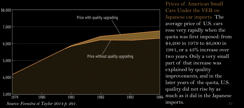 L’impact d’une Restrictions Volontaires aux Exportations (RVE) sur le commerce : voitures Japonaises aux USA dans les années 1980.