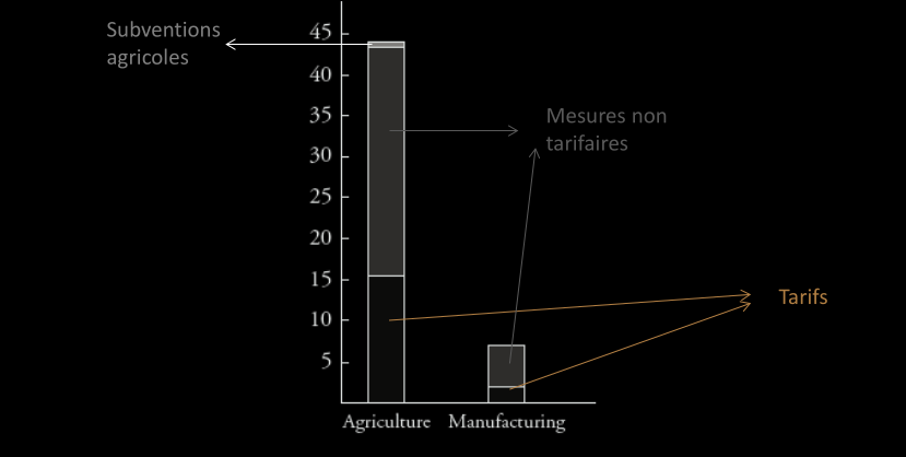 Protection moyenne de l’ OCDE en agriculture et manufacture :