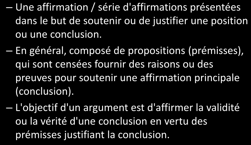 • La construction, l’identification et l’analyse des objets sociaux impliquent le recours à des concepts, des théories (pouvant appartenir à des paradigmes) et des méthodes permettant d’en évaluer la validité. Les arguments permettent d’établir les liens entre ces éléments et donner une validité à l’analyse.