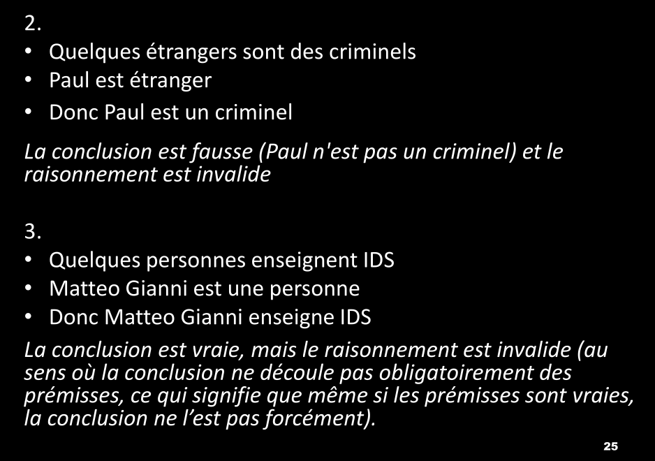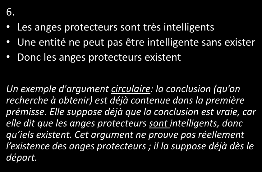 Il faut donc se méfier des arguments fallacieux ou des sophismes (arguments apparemment bien formés mais qui ne contiennent pas de vérité démontrée, ou alors faux), tels que: