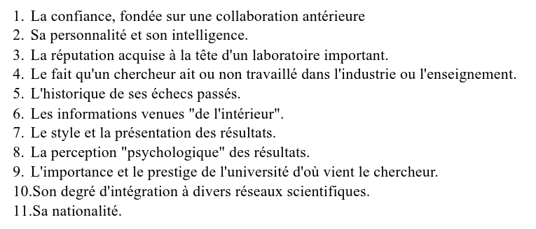 • Chercheur (B) : Je ne suis pas vraimeint impressionné par ses capacités et j’ai plus de doutes sur tout ce qui vient de lui que sur ce que font les autres.