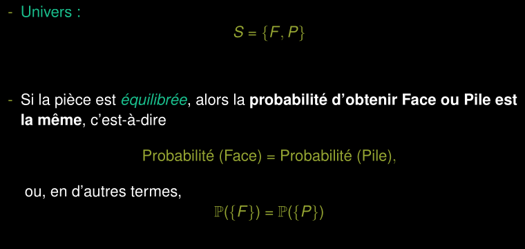 Si tous les résultats sont équiprobables, c’est-à-dire qu’ils ont la même probabilité de se produire: