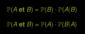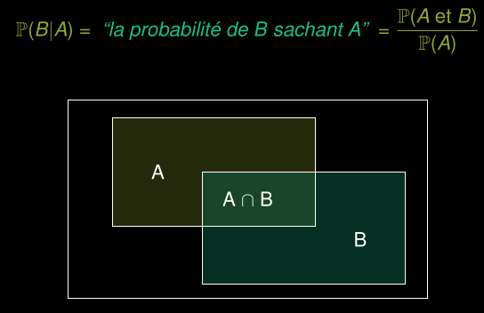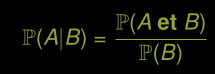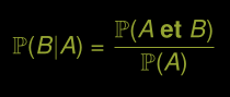 - P(B|A) = probabilité conditionnelle de B sachant A.