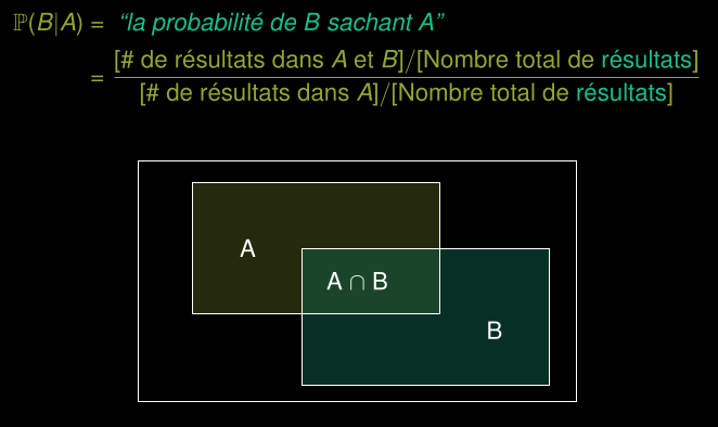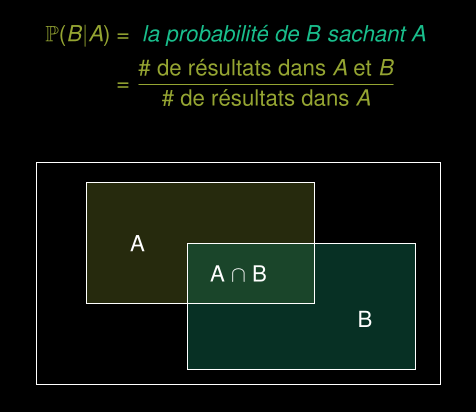 Probabilité conditionnelle de l’événement B étant donné que l’événement A est survenu :