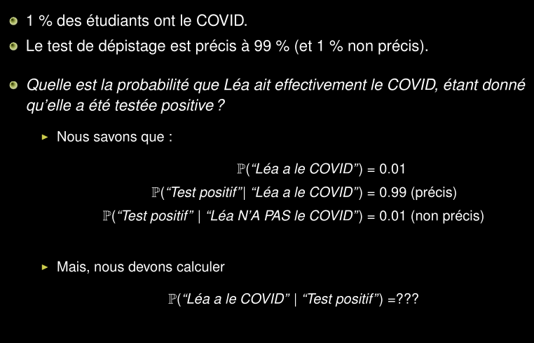 Quelle est la probabilité que Léa ait effectivement le COVID étant donné qu’elle a été testée positive ?