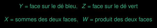 Deux dés équilibrés sont lancés, un bleu et un vert.