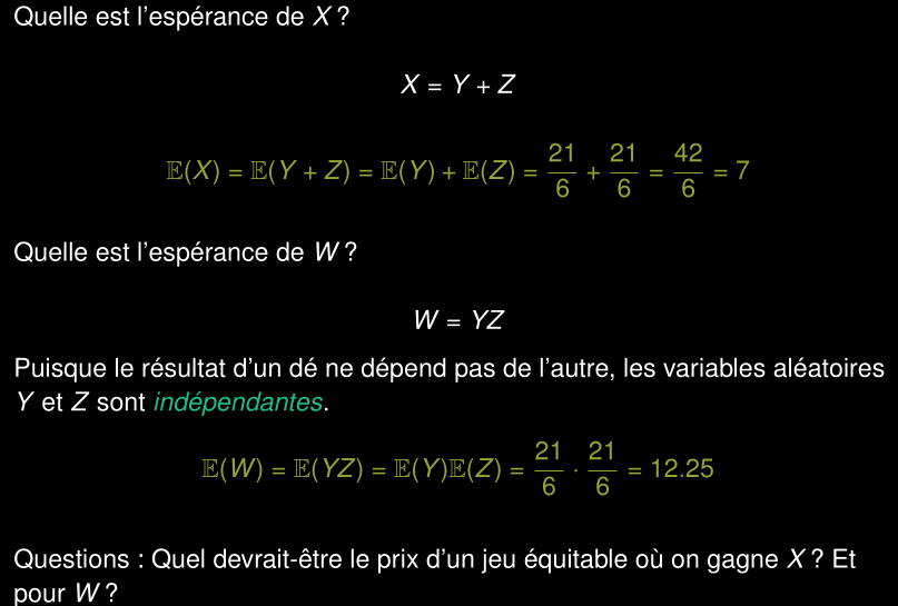 Pour vérifier si le pari est équitable ou non, calculez l’espérance de votre gain/perte :