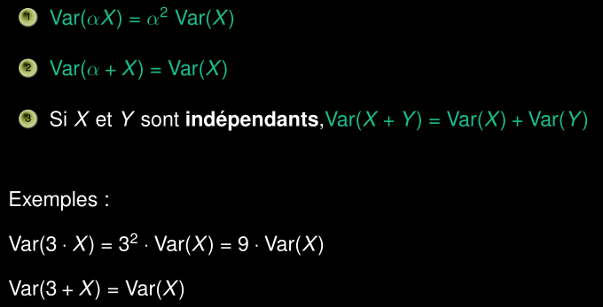 La variance ne peut jamais être négative, tout comme une probabilité. Si on a une variable aléatoire avec un seul valeur elle peut être 1 néanmoins.