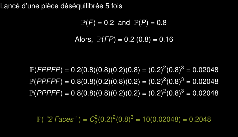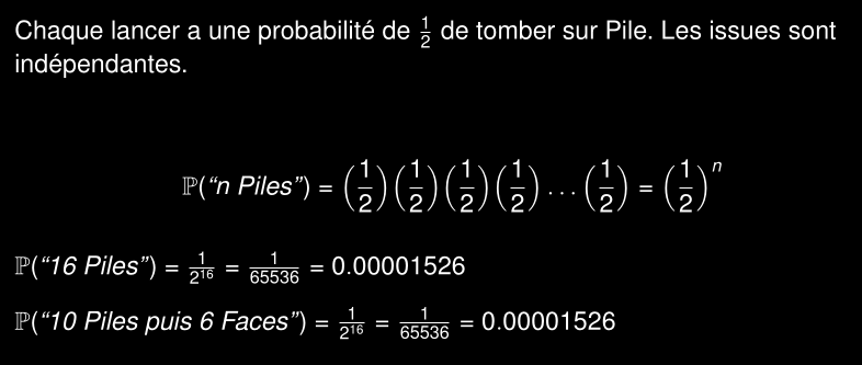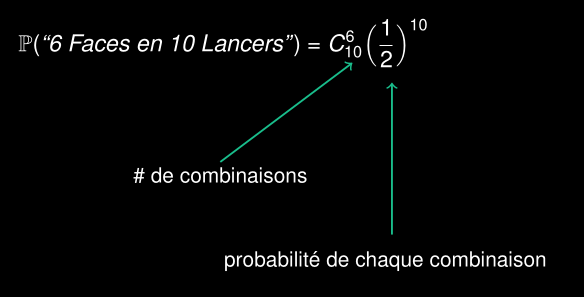 Probabilité d’obtenir 6 faces sur 10 lancers