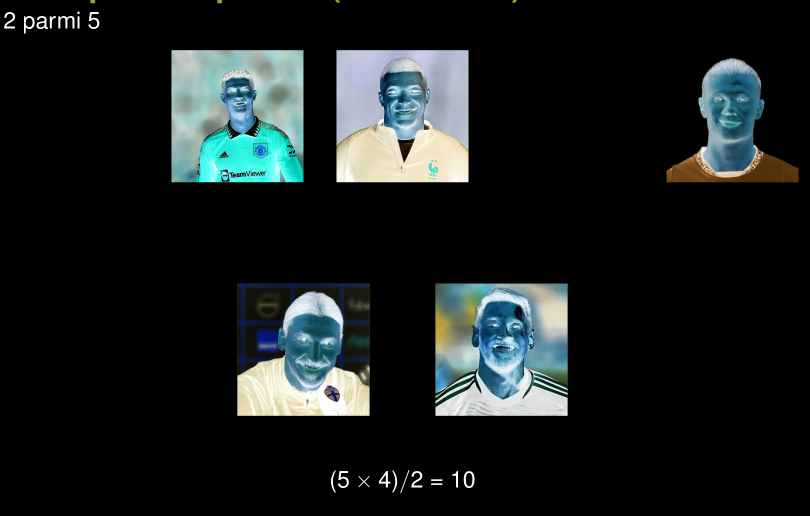 Pourquoi entre 2? Parce que l’ordre n’a pas d’importance et donc la moitié des équipes est la même que l’autre.