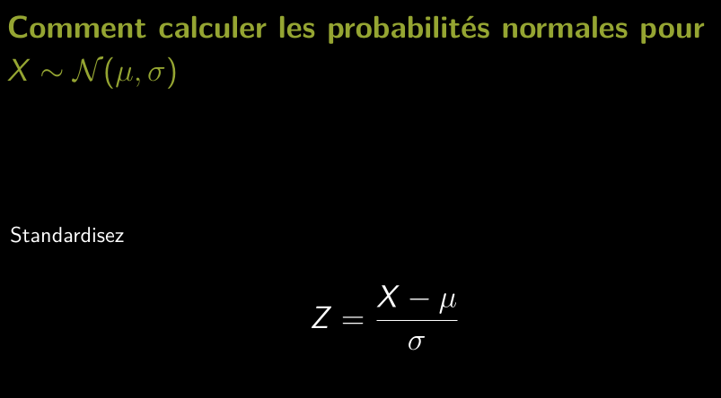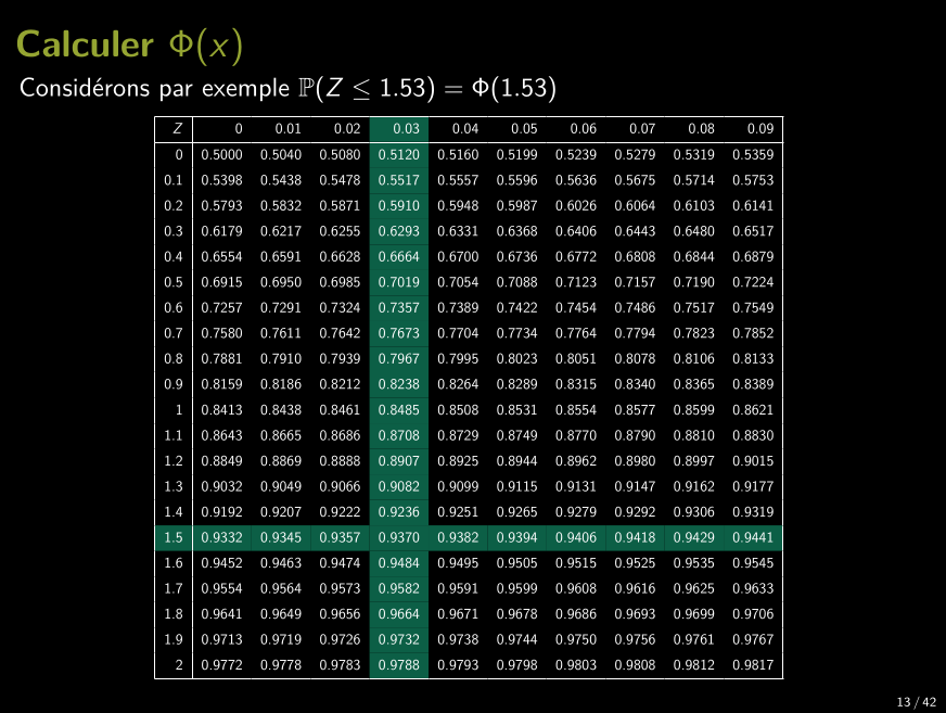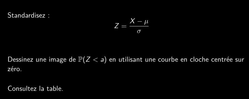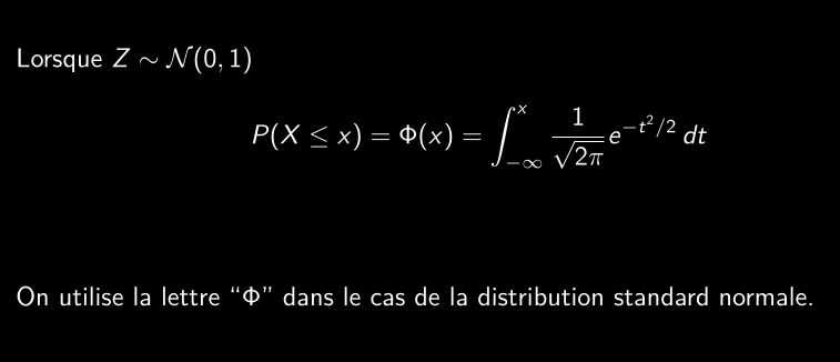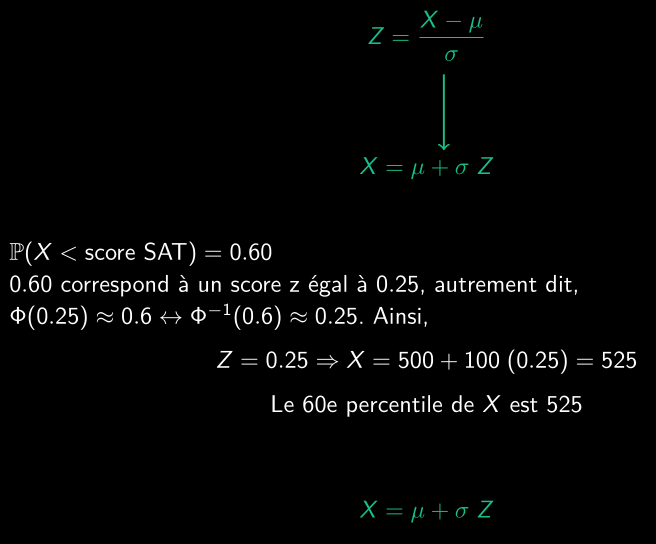On utilise alors l’inverse de la fonction cumulative de densité de la standard normale, Φ−1 (p), où Φ−1 (p) correspond à la valeur Z tel que Φ(Z ) = p.