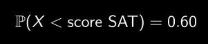 Les scores SAT sont normalement distribués avec une moyenne µ = 500 et un écart-type σ = 100. Quel score SAT devez-vous obtenir pour être dans le 60e percentile ?